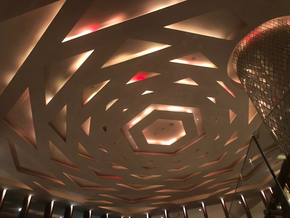 Take off we eventually did and I arrived in Jakarta at about 4am. Yawn. Above is a photo of the lobby ceiling at the Jakarta Mandarin Oriental. Beautiful, isn’t it? I wasn’t able to get a photo, but the lobby floor mirrors the ceiling in shades of brown and tan marble. Gorgeous. Even at 4am, several hotel staff greeted me warmly. Thus began my interaction with the lovely, graceful Indonesian people. Everything they do, they do beautifully. When they presented my room key to me, it was with both hands and a bow. It was like that with everything, no matter where we were.